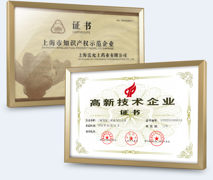 2016年,上海金年会科技药业股份有限公司荣列上海市专利工作示范企业,并于2018年底以优秀成绩通过上海市知识产权局验收。2019年,申报第一届上海市知识产权创新奖(保护)并获一等奖。2019年被认定为国家知识产权优势企业。2023年荣获国家知识产权示范企业、上海市创新型中小企业、上海市专精特新中小企业、上海市产教融合型培育企业。